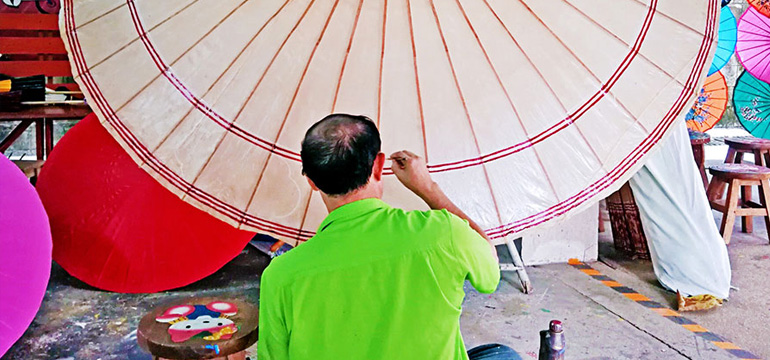 Travelers can see how local people make and paint an umbrella.