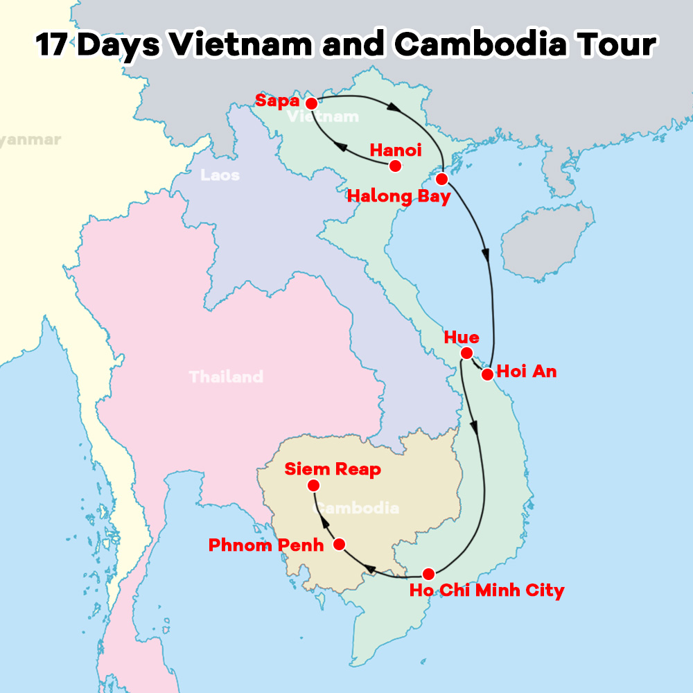 Visit the essentials in Hanoi, Ho Chi Minh City, and Phnom Penh to get general ideas about Vietnam and Cambodia, the two graceful and atmospheric countries in Southeast Asia.