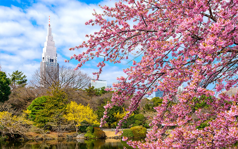 Shinjuku Gyoen National Garden is most popular in spring when the park cherry trees are in bloom.