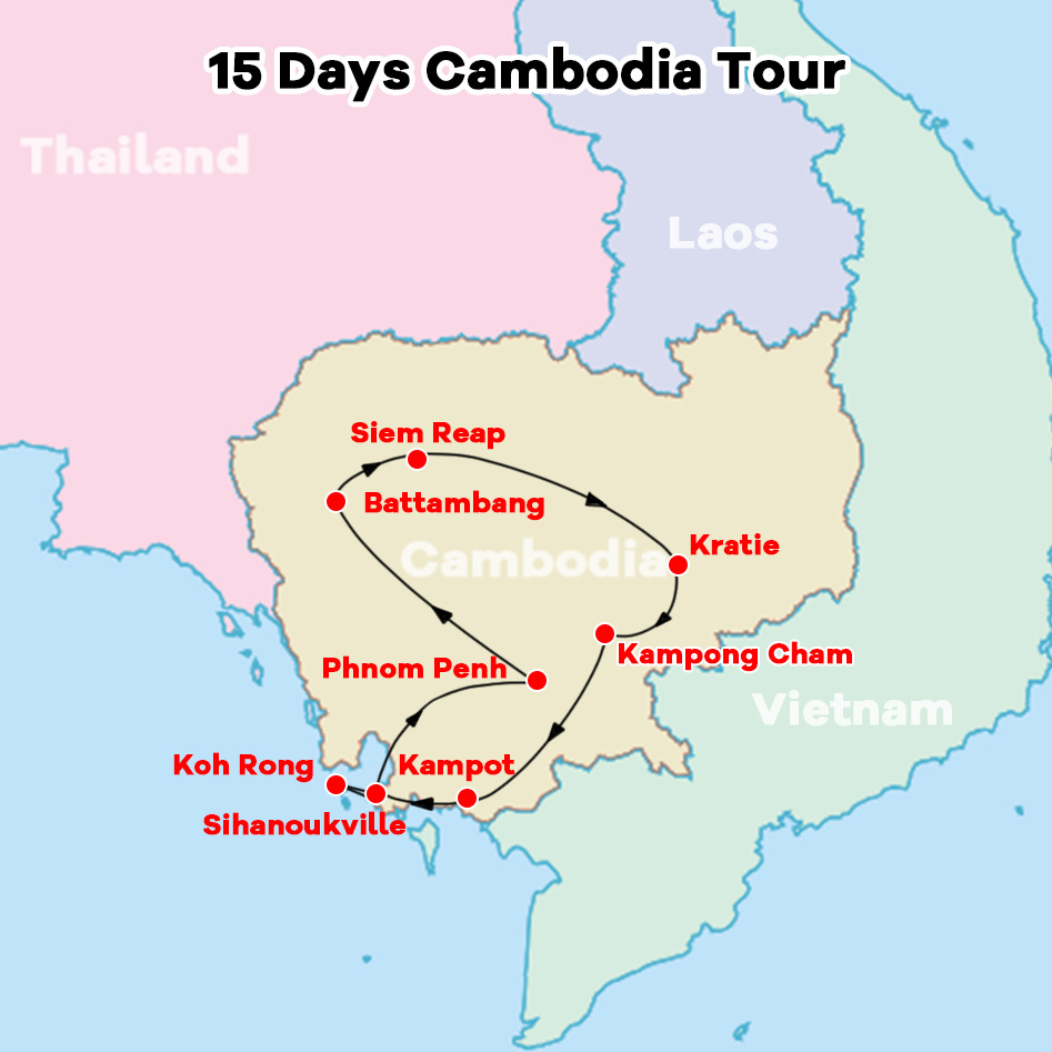 Travel around Cambodia with all the essentials like Phnom Penh, Battambang, Siem Reap, Kampong Cham, and Sihanoukville to get a full version of this mysterious country.