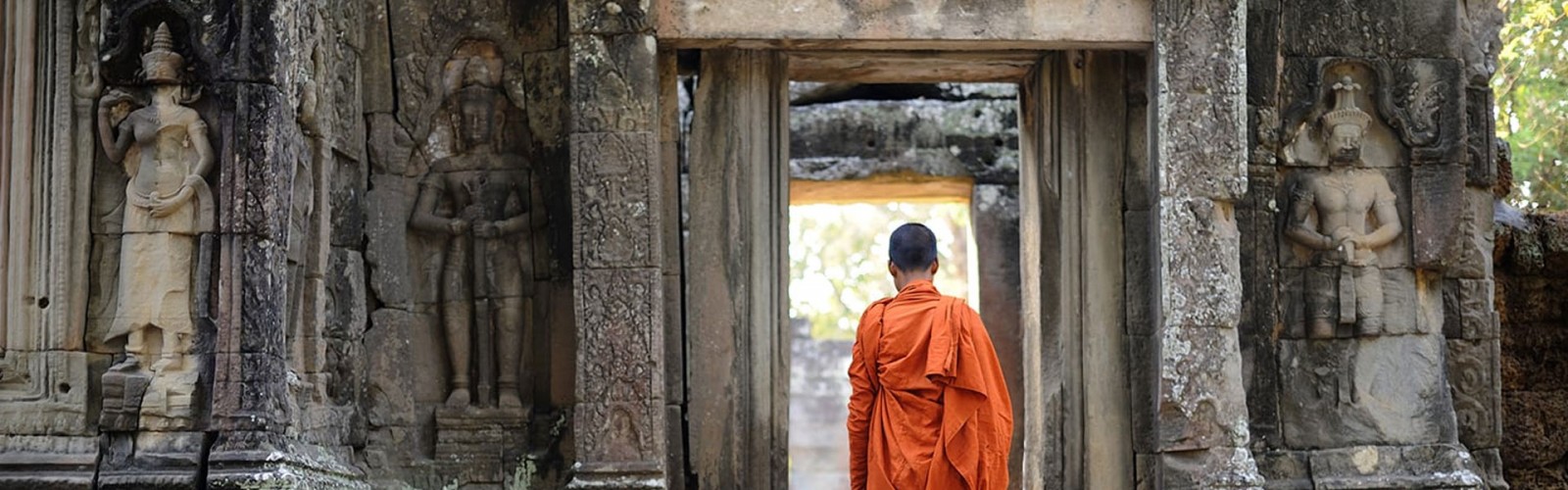 Take a full-day trip to Angkor Wat to discover the mystery behind the ancient stone faces.