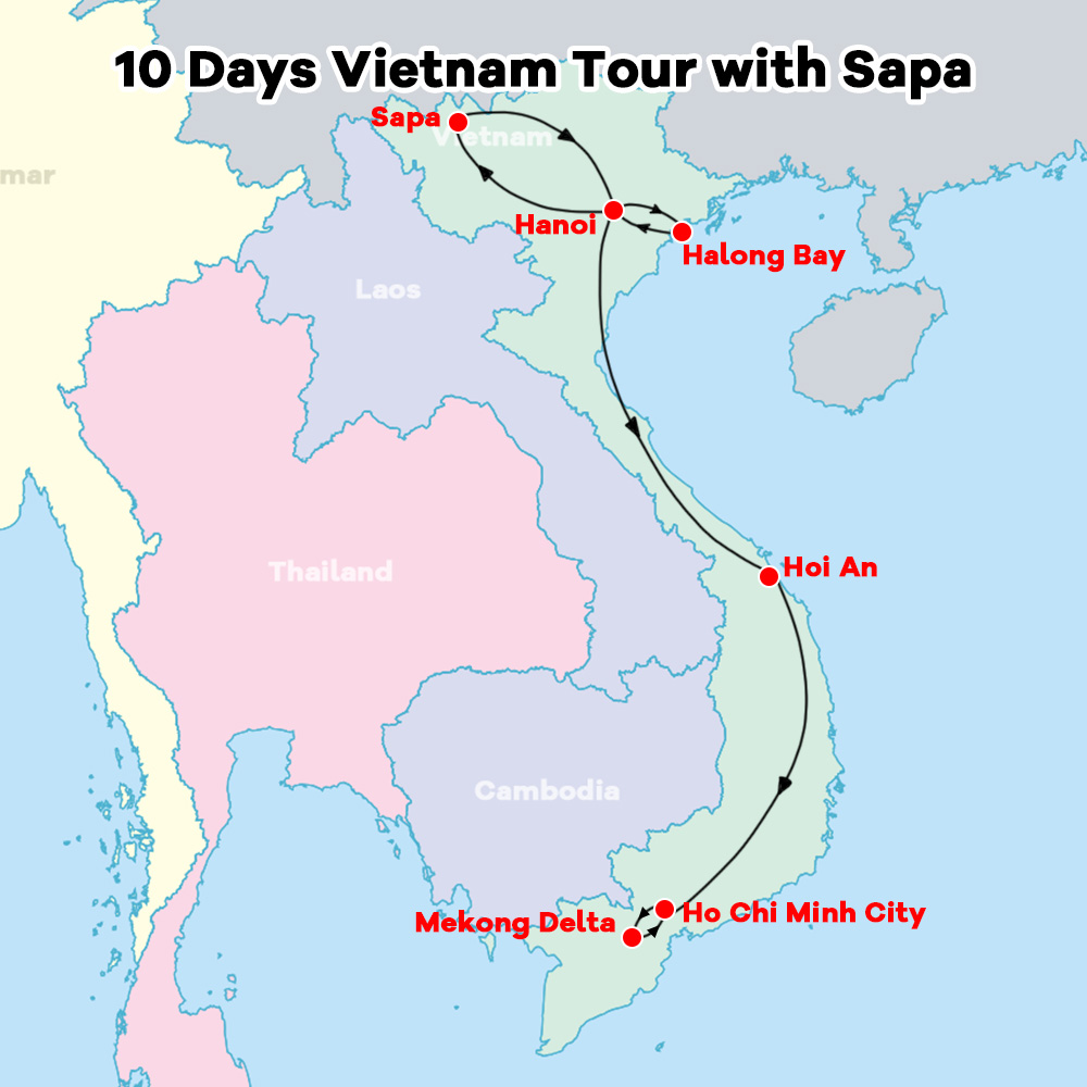 Start from Hanoi and travel south to Ho Chi Minh City via Hoi An ancient town on the east coast of Vietnam to get a full view of this charming land.