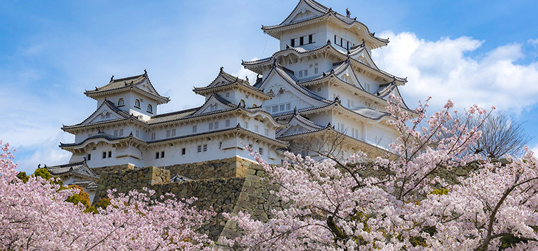 The Himeji Castle, listed as a UNESCO world heritage, is the best-preserved sample of a typical Japanese wooden castle from which you could feel the elegance of traditional Japanese architecture.