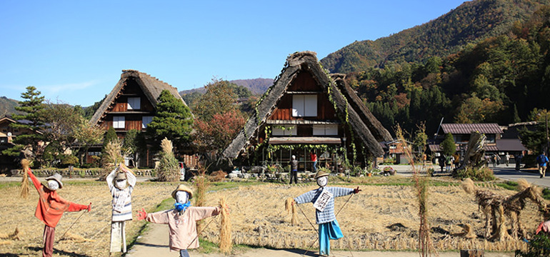 village of Shirakawa-go. Together with the neighboring Gokayama, Shirakawago was listed as a UNESCO world heritage site in 1995. They are famous for the traditional Gassho-zukuri farmhouses, some of which are more than 250 years old. You will visit the Gassho-zukuri Minkaen, an open-air museum of farms, and the other structures to learn more about the local farming life.