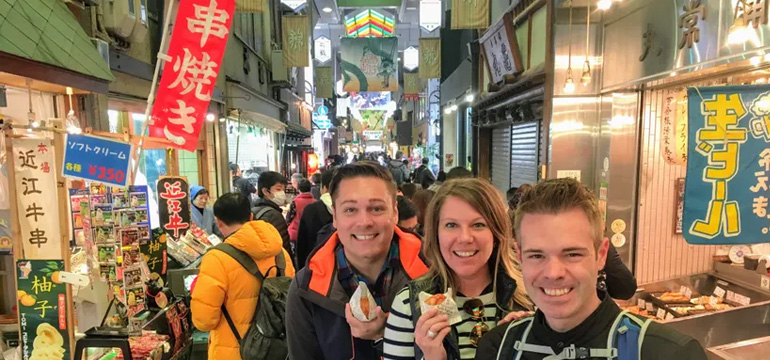 Nishiki Market, the ‘Kitchen of Kyoto’, where you can find many of Kotyo’s regional specialties.