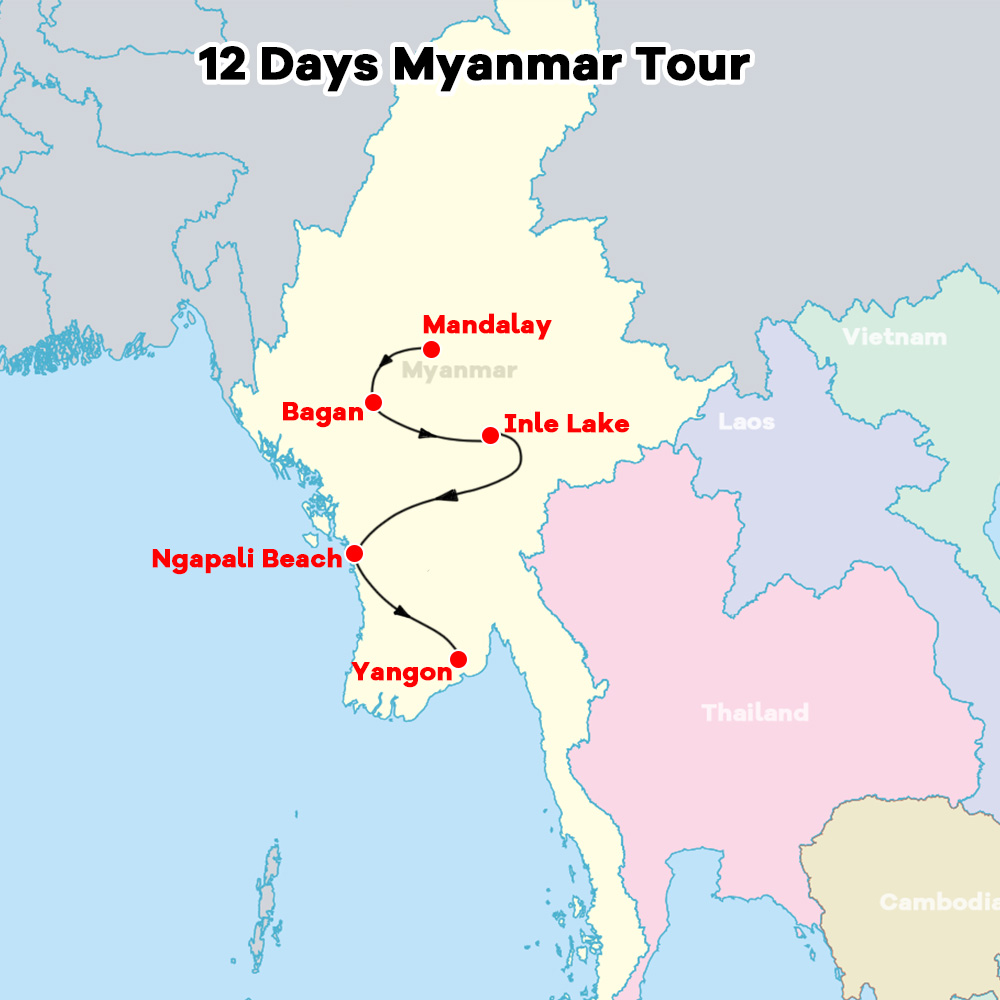 There are only 12 visa-free countries. If you travel with a passport from all other countries, you will need to apply for a Myanmar tourist visa in advance.