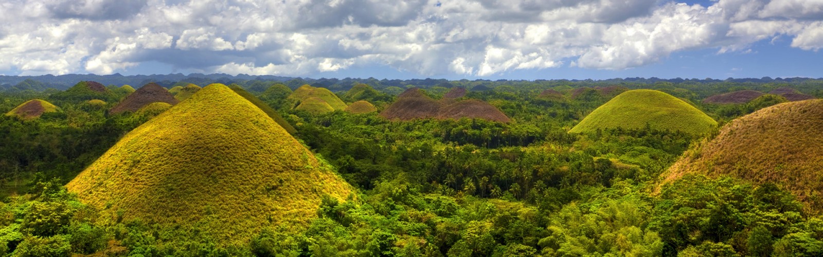 Chocolate Hills, which is one of the most popular tourist spots not only in Bohol but in the whole Philippines. Thousands of green and brow-open hillocks dot the landscape as far as the eyes can see, truly a natural wonder that can only be seen in Bohol.