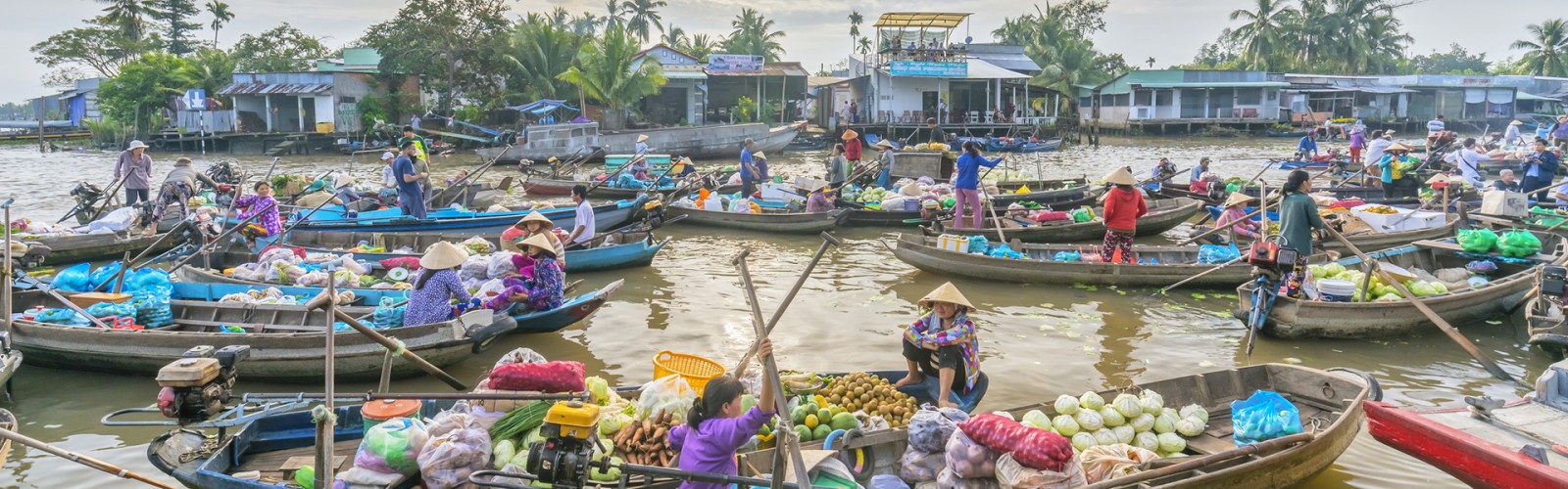 Explore one of three biggest floating markets in the Mekong Delta to experience the real life of local people.
